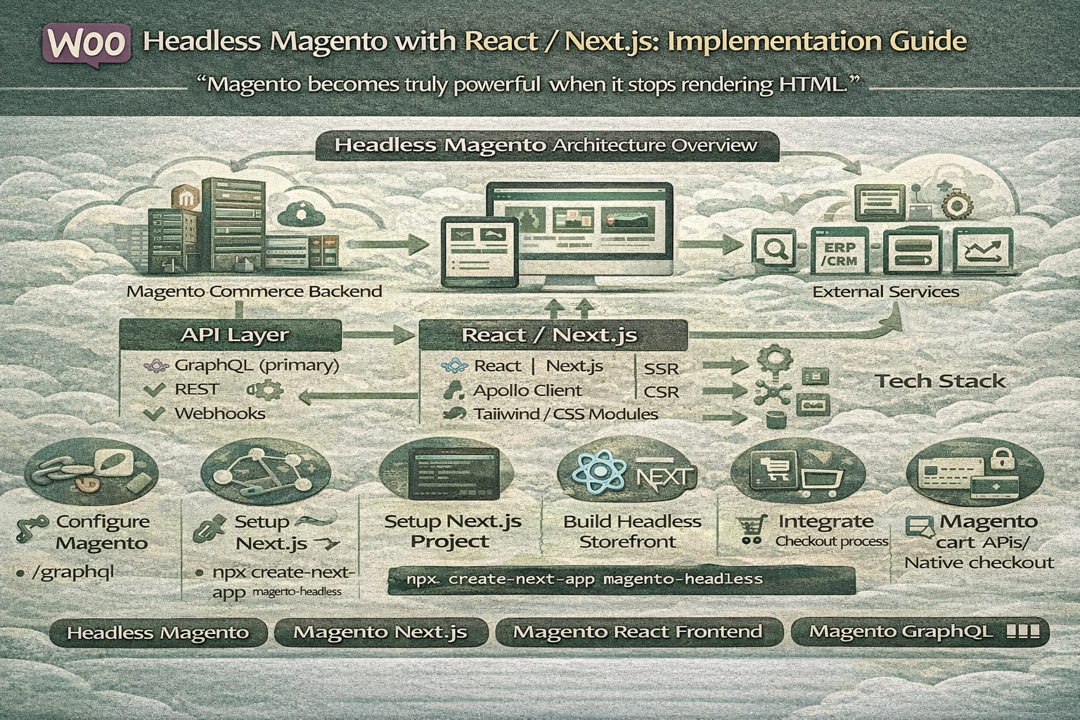Headless Magento with React / Next.js provides unmatched flexibility, performance, and scalability for enterprise ecommerce platforms.